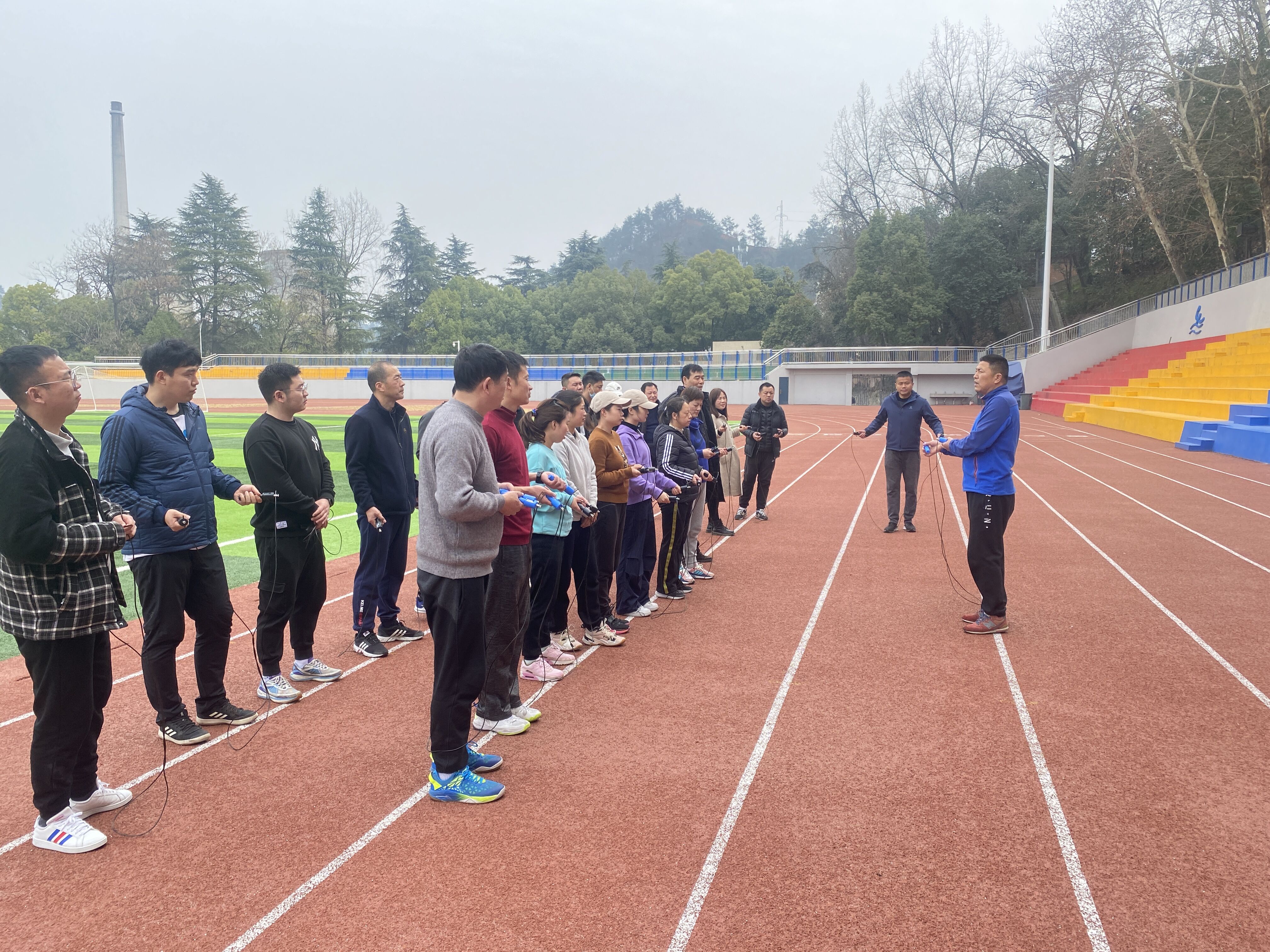 日在田径场进行跳绳技术实践活动。活动由石宏老师主讲,体育部全体教师参加了此次活动。