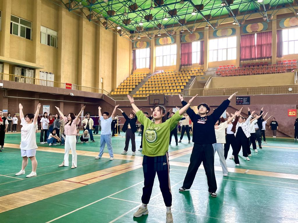 第43届运动会即将在五月初举行,为了培养学生的集体主义精神、锻炼学生的强健体魄和顽强意志、丰富校园文化生活、释放青春活力,运动会特别设置了第九套广播体操比赛项目。4月10-13日中午,体育部教师孙雨、余梦娇、罗荔,以及13支参赛队伍代表在体育馆进行了为期四天的赛前培训。