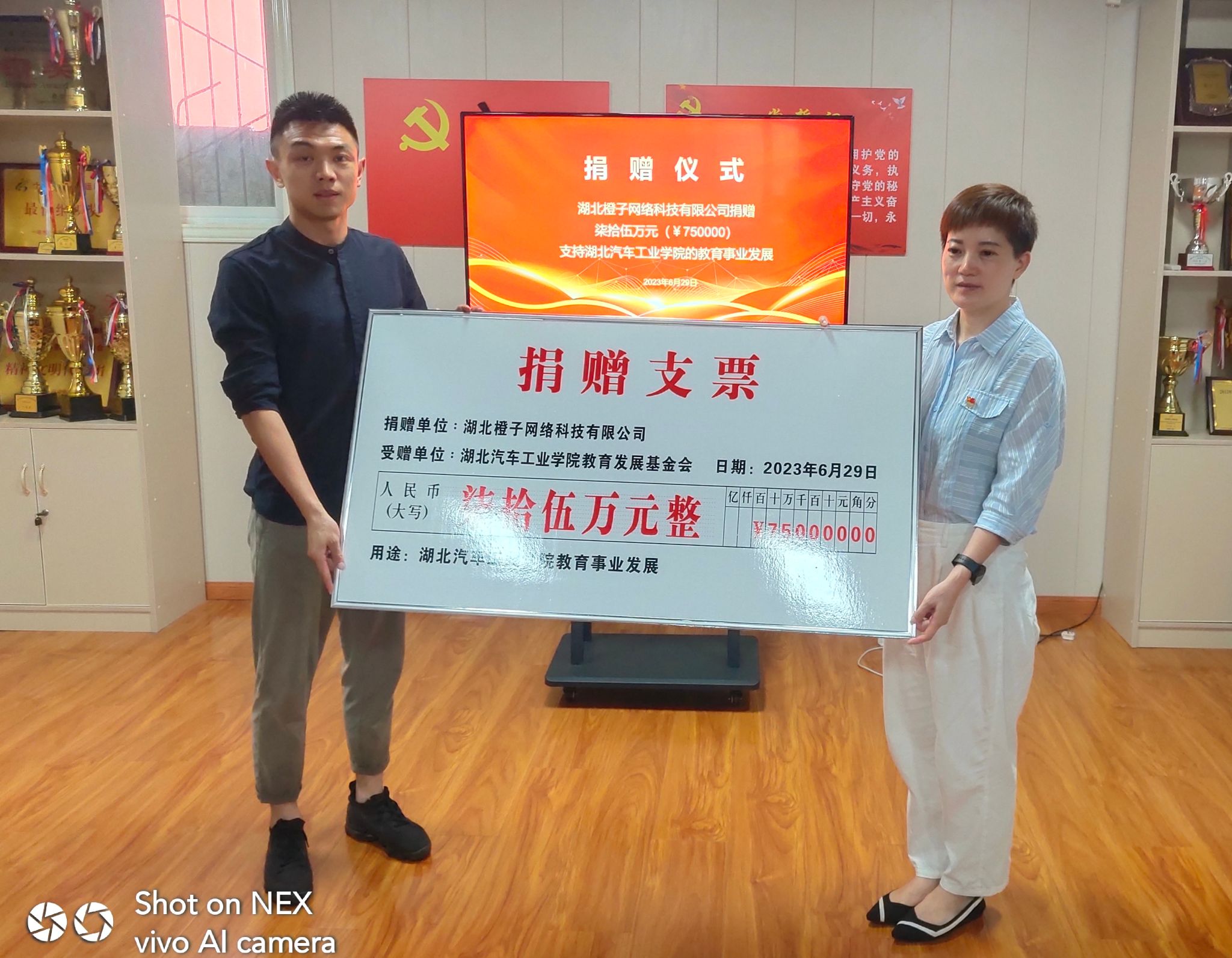 最后,张斐代表湖北橙子网络科技有限公司向学校捐赠75万元,熊玲代表学校颁发捐赠荣誉证书。