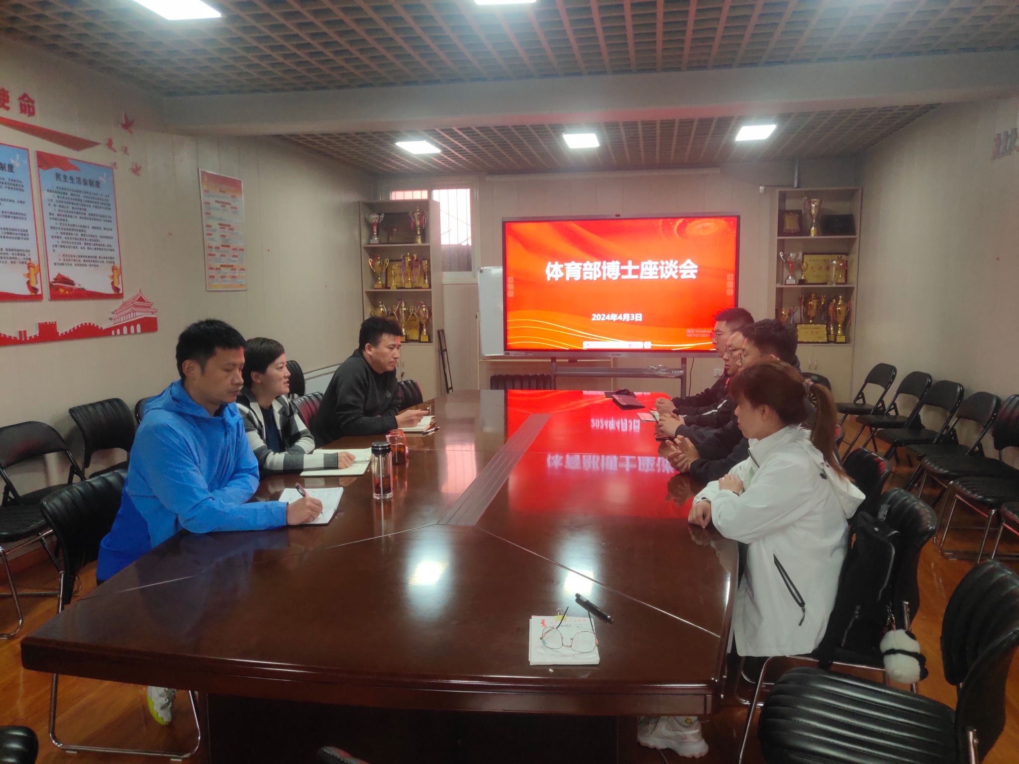 4月3日下午,体育部博士座谈会在部办公室召开,体育部主任熊玲、副主任肖鹤、杨谦,在职博士参加了本次会议。