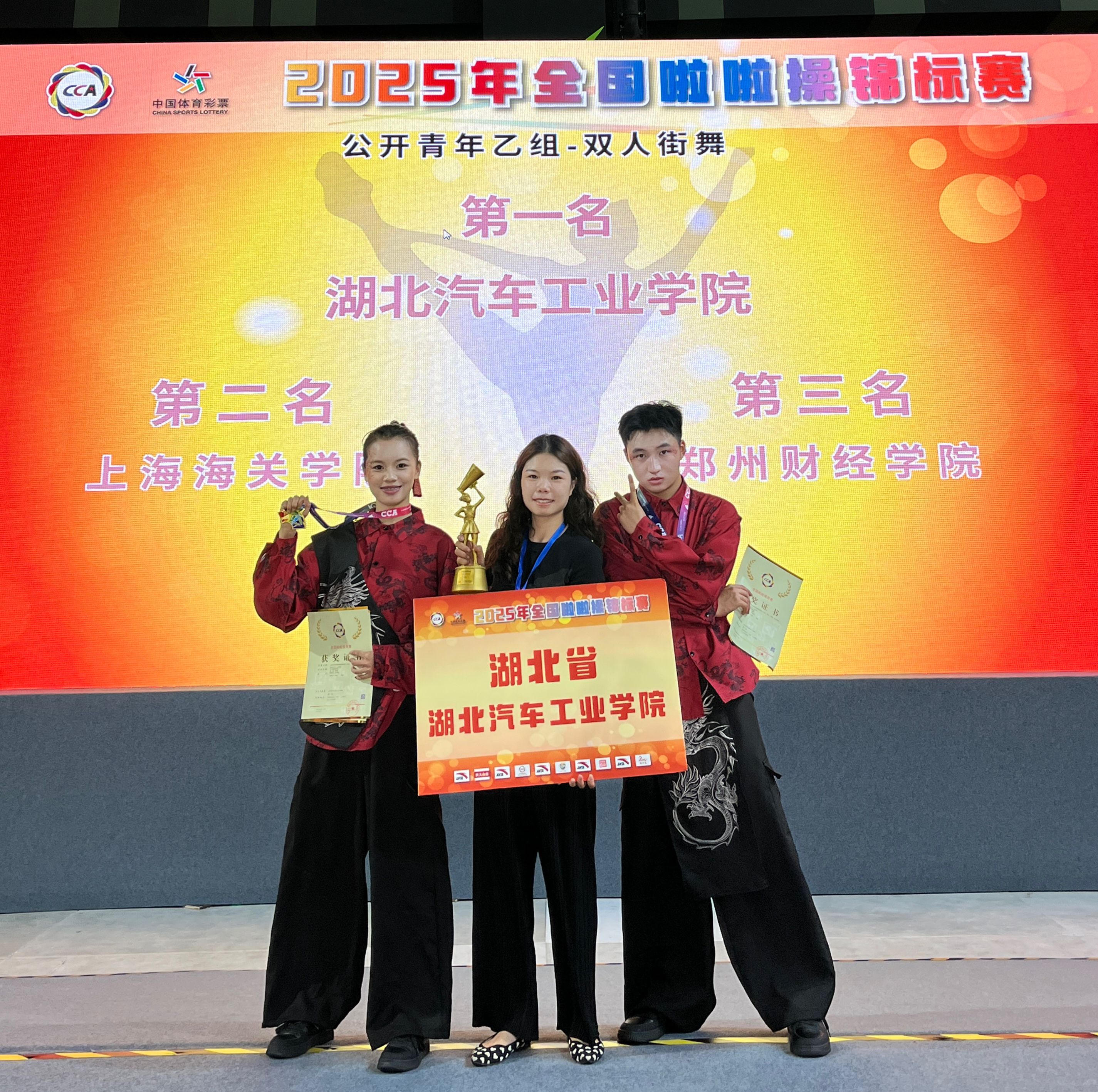 啦啦操队的明遥、邓博凭借出色的编排与发挥,荣获大学生公开青年乙组 - 双人街舞冠军。
