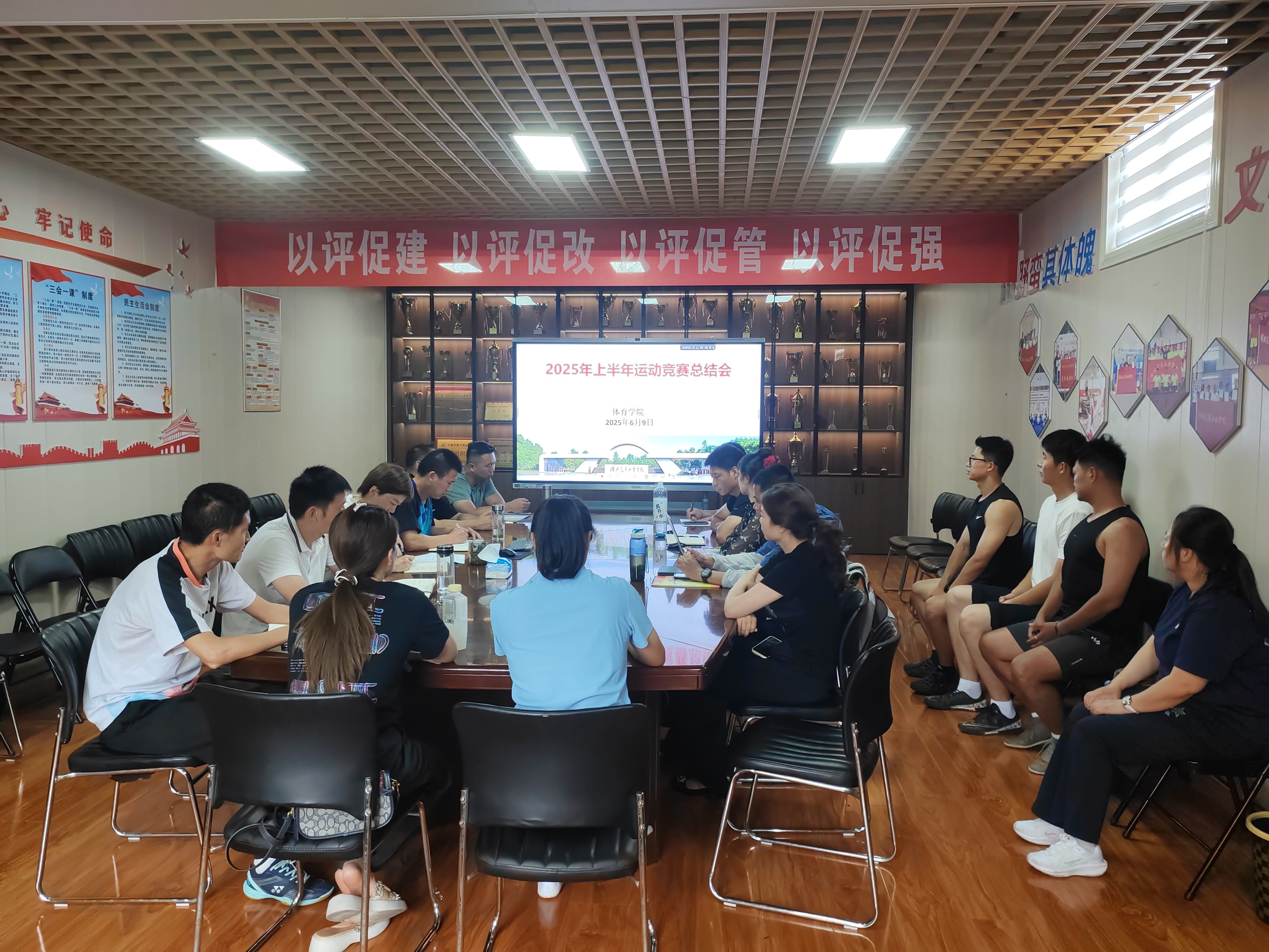 会上,杨谦率先对 2025 年上半年运动队竞赛情况作出总结,回顾各运动队在赛场上拼搏奋进的历程,分析当前取得的成绩与面临的挑战。同时,他对下半年竞赛进行展望,提出明确要求,期望各运动队在接下来的赛事中再接再厉,以更饱满的热情、更扎实的训练投入竞争,提升学院整体运动水平。