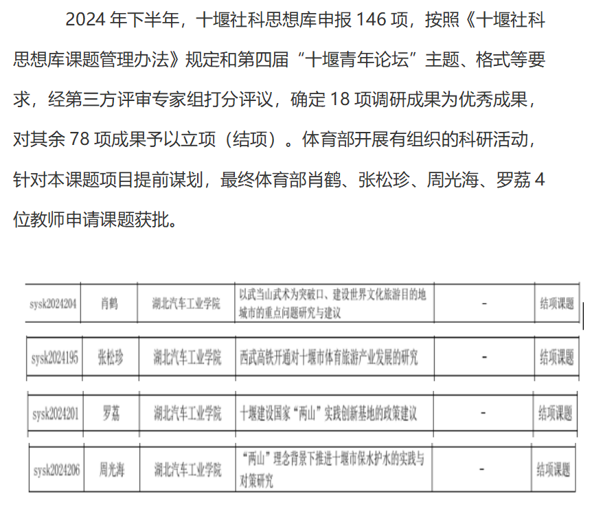 2024年十堰市社科联下半年4位教师立项