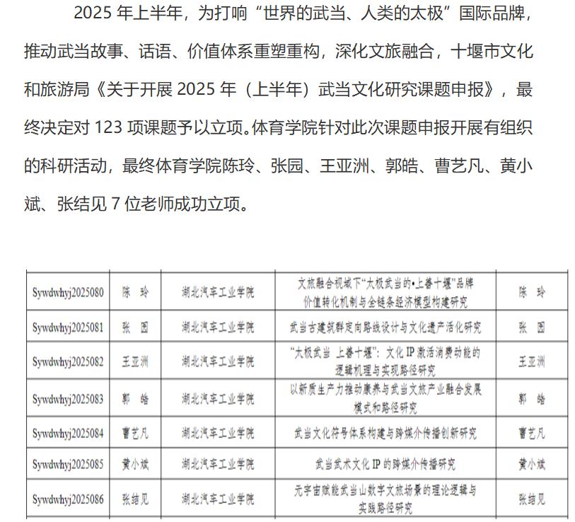 疯AV 7位老师申报《2025年(上半年)武当文化研究课题》获批立项