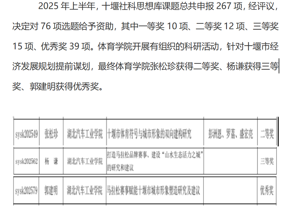 2025年上半年十堰社科思想库课题申报获奖情况