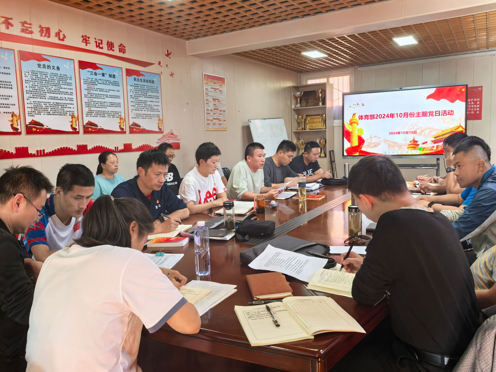 2024年10月15日下午,体育部党支部在会议室召开党员大会,开展10月份主题党日活动,会议由第三党小组组长张松珍主持。