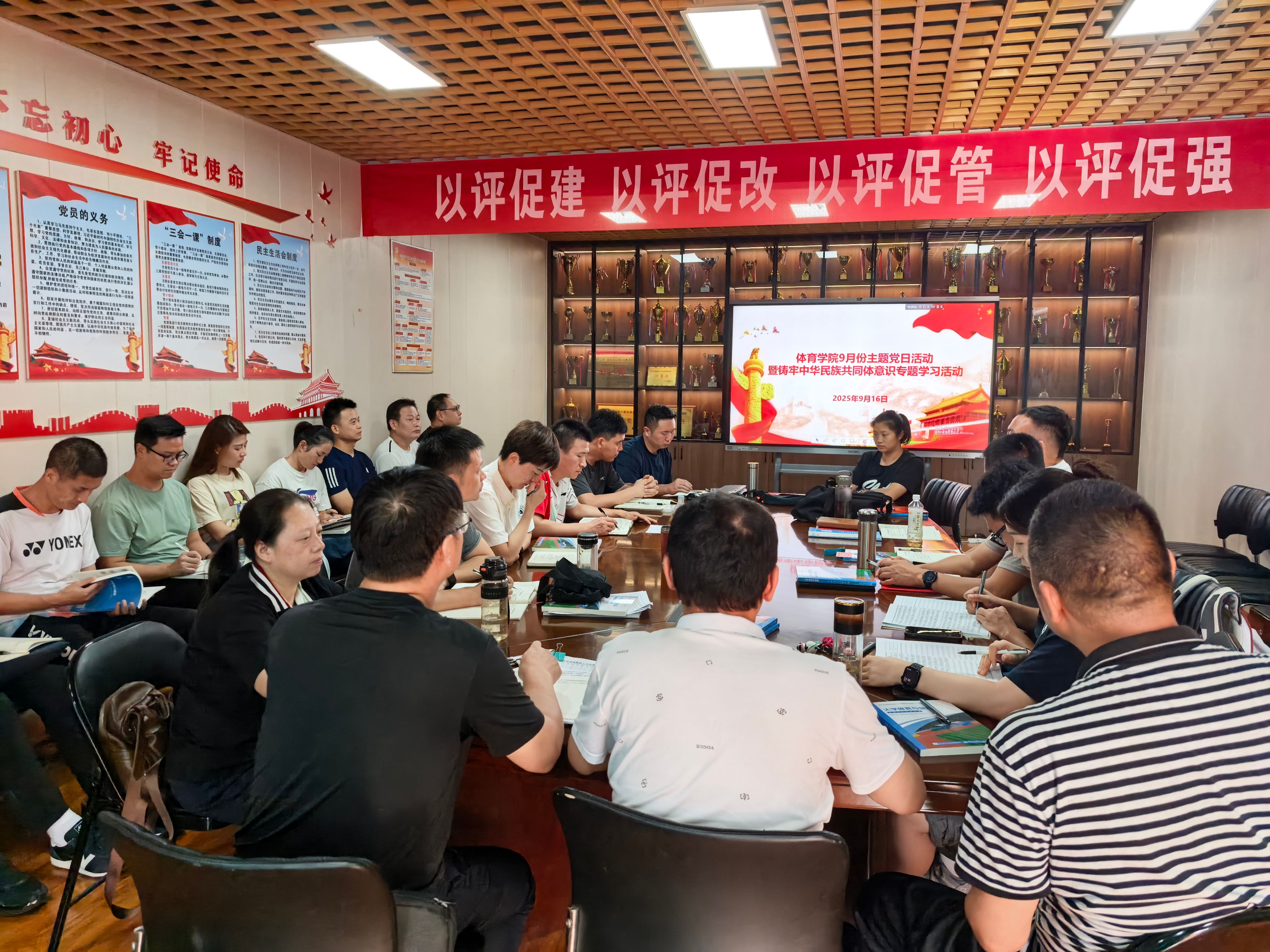 随后各位同志分享了自己的学习体会,罗荔同志表示:我们必须坚持立德树人,将课程思政深度融入体育教学,引导学生铸牢中华民族共同体意识;张结见同志表示:在今后的教学中,会将抗战精神融入课堂,激励学生传承先辈坚韧不拔、自强不息的品质,投身强国建设;余腾同志表示:作为一名高校体育教师,首先自身要树立保密意识,在日常工作中做到