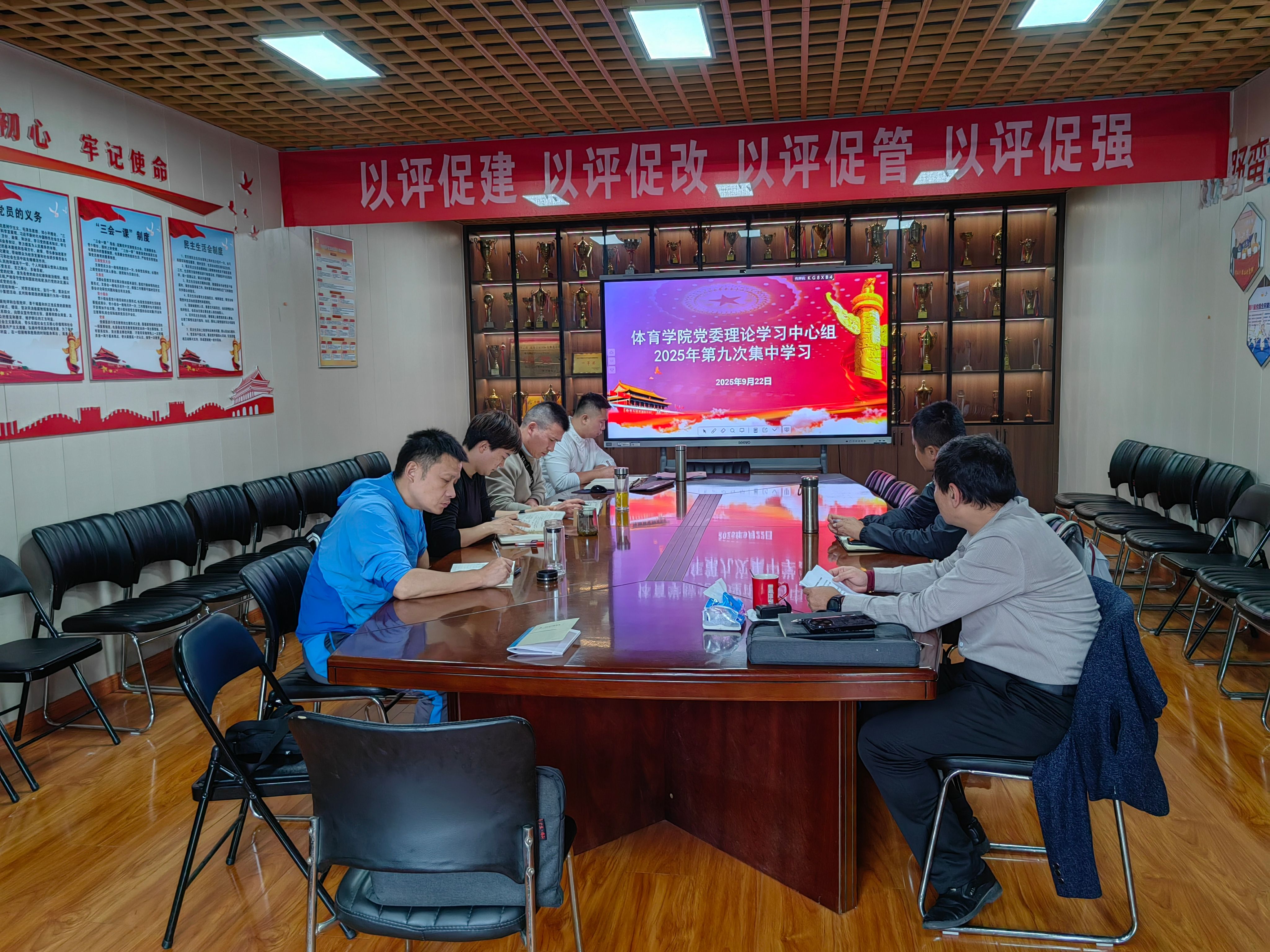 党委在会议室开展7月份政治理论学习中心组学习会,熊玲书记主持会议,党委委员、教研室主任、办公室主任参加了本次学习。