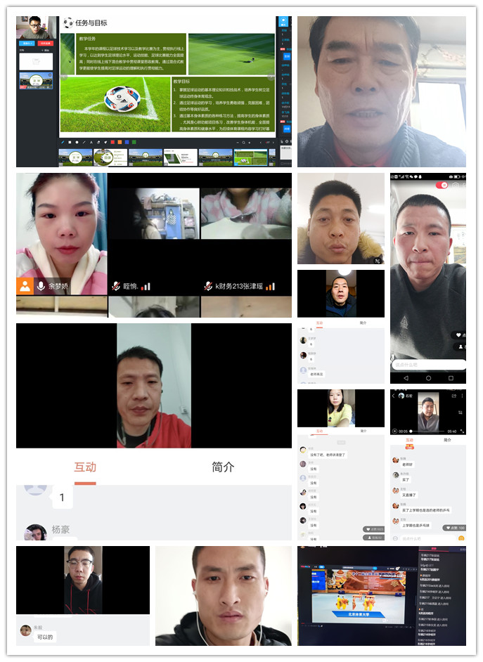 随后由每位教师介绍了自己在过去一周里进行体育课线上教学开展情况,围绕教学组织、点名签到、技能展示、师生互动和教学效果等方面作了深入的交流发言和经验分享,同时也为长期开展线上教学提出了合理性建议。最后体育教研室主任张园老师总结各位教师的发言,提出要发挥各位教师的主动性利用网络平台结合每个体育项目的特点进行网络教学。利用本次全校网络教学的机会,制作一批精品体育教学网络视频,做到让学生满意,让学校放心,同时为体育课建设线上线下混合一流课程打好坚实的基础。