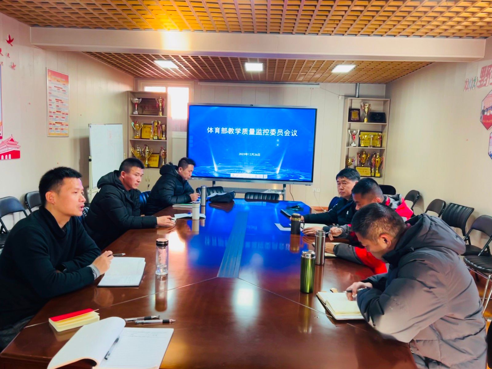 12月26日下午,本校体育部进行了本学期第五次体育部教学质量监控委员会会议。会议主题为“如何更有效地提升体育教师的教研能力”,教学质量监控小组全体成员参加了本次会议。会议由体育部副主任肖鹤主持。