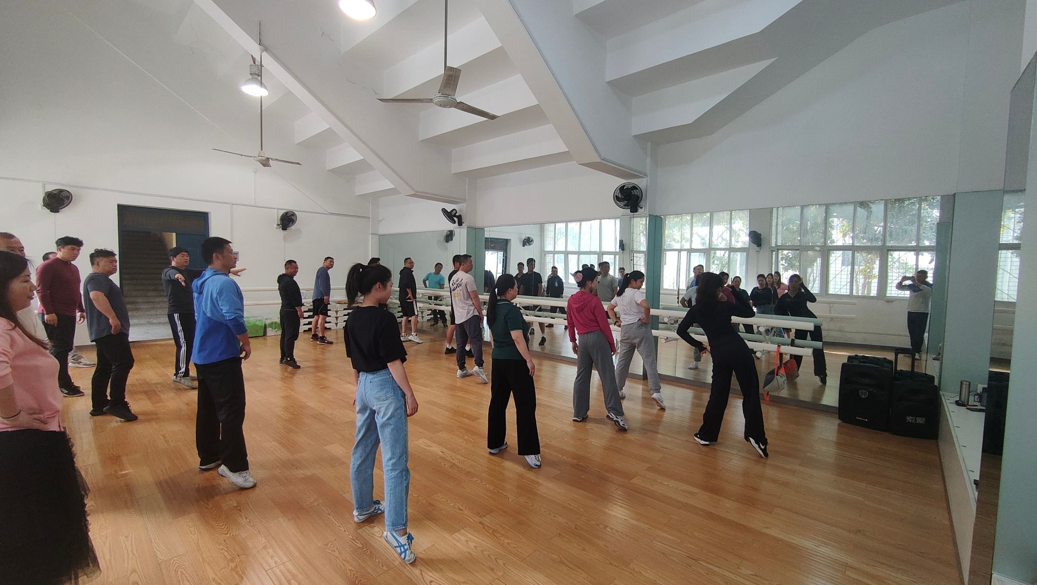 最后,所有教师来到体育馆舞蹈房,在陈远黛老师教授下学习了拉丁舞中恰恰的基本步伐以及双人手接手动作。通过本次活动,为体育教师提供了舞蹈技术交流和展示的平台,磨练了教师舞技,增强了体育部的凝聚力,也为后期在学校师生中广泛开展体育舞蹈运动打下坚实的基础。