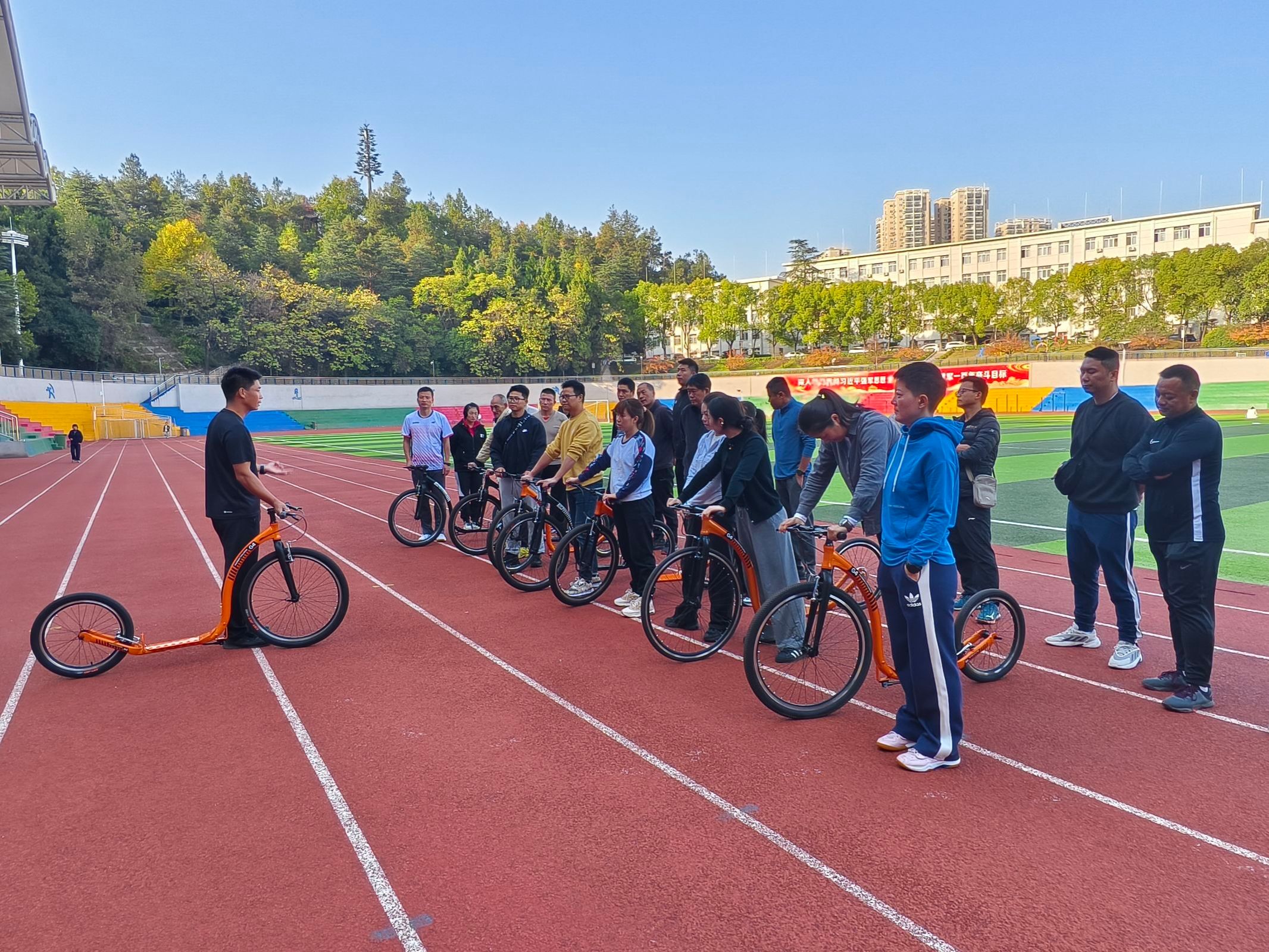 11月5日下午,体育部组织全体教师在田径场进行FOOTBIKE技术实践活动。本次活动由王亚洲老师主持,旨在推广和普及FOOTBIKE运动,提升教师们对新兴体育项目的认识和技能。