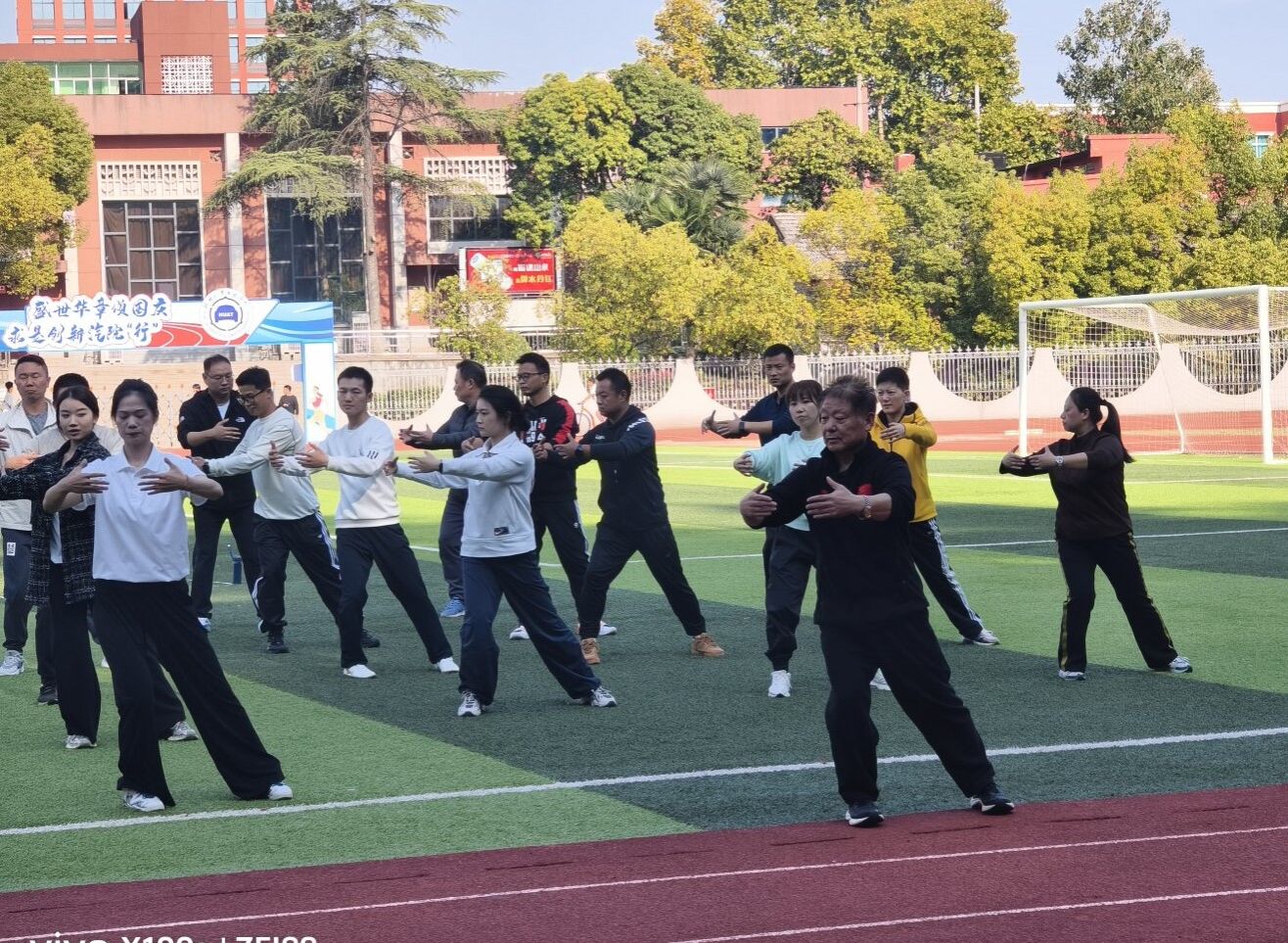 现场指导武当太极拳九势教学,体育部全体教师参加了本次活动。