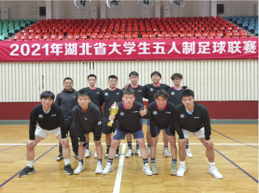 足球队由于十一人制的局限性,于2009年转型成五人制足球,目前运动队拥有20余名队员,配备教练员1名(由体育课部老师兼任),专用的人工草皮训练场一块。在学校领导和体育课部领导的关心和支持下,自2009年参加湖北省大学生五人制足球联赛以来,分别获得甲组第五名两次、第四名一次,更于2021年获得了甲组季军的重大突破,取得了疯AV