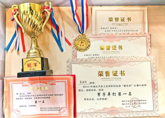 “社联杯羽毛球比赛”冠军。在学习上,勤奋认真,学习成绩名列前茅,学分绩点在2.5以上,曾获得人民奖学金。平时会利用课余时间积极参加各类专业类竞赛,在“互联网+”大学生创新创业大赛、全国三维数字化创新设计大赛等竞赛中取得优异成绩。