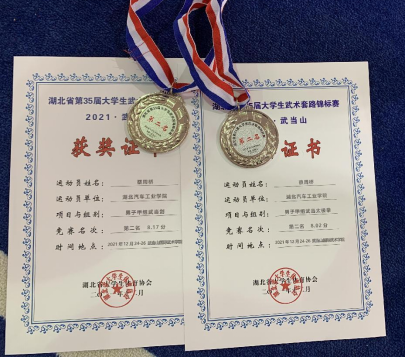 曾获湖北省第三十五届大学生武术套路锦标赛武当剑、太极拳第二名