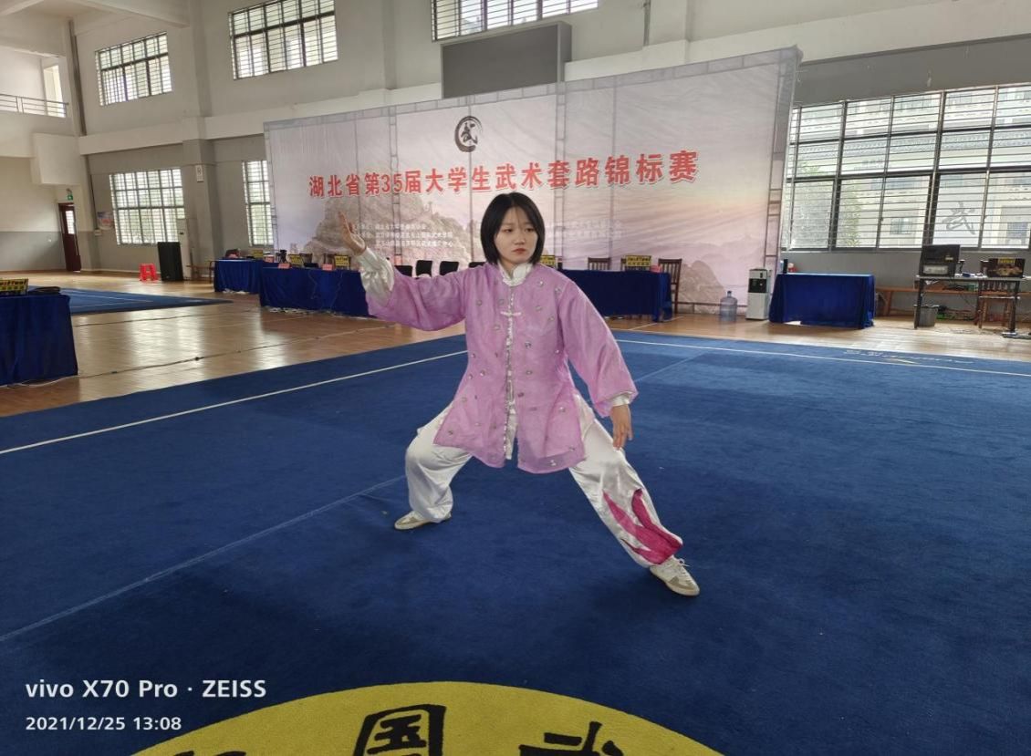 陈迪龄,女,经济管理学院20级学生,校武术队成员。现担任校武术队队长。多次随校武术队参加湖北省大学生武术锦标赛,曾获湖北省第三十四届大学生武术套路锦标赛武当剑、武当拳第一名;湖北省第三十五届大学生武术套路锦标赛武当剑、武当拳第一名。