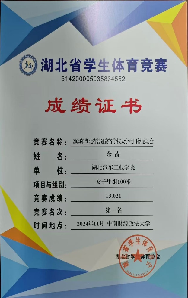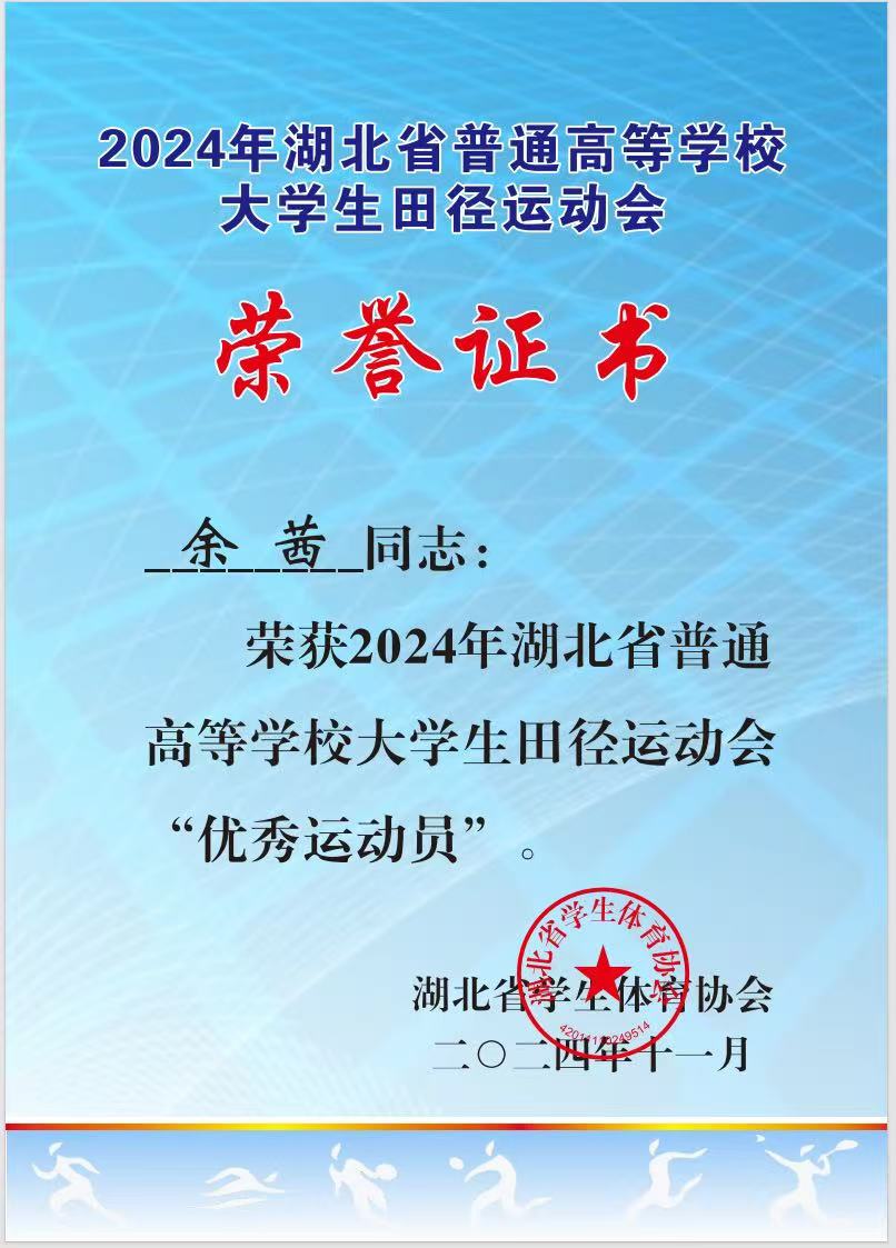 8.2024年湖北省普通高等学校大学生田径运动会“优秀运动员”。