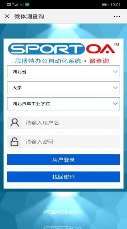 学生关注公众号后请点击体测查询,选择湖北省、大学、疯AV